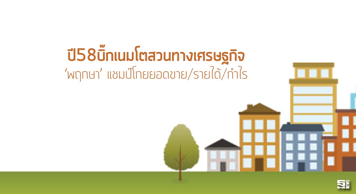 แม้ในปี 2558 ตลาดอสังหาริมทรัพย์จะประสบกับปัจจัยลบรอบด้านไม่ว่าจะเป็น ปัญหาหนี้สินภาคครัวเรือนพุ่งสูง สถานการณ์ทางการเมือง สภาพเศรษฐกิจ จนสร้างความหวั่นวิตกให้กับผู้ประกอบการอสังหาริมทรัพย์ไม่น้อย แต่จากการประกาศผลดำเนินงานของปี 2558 อย่างเป็นทางการต่อตลาดหลักทรัพย์ฯ พบว่าผู้ประกอบการส่วนใหญ่สามารถทำยอดขาย รายได้สูงกว่าปี 2557 และจากการรวบรวมข้อมูลของ "ฐานเศรษฐกิจ" พบว่า บริษัท พฤกษา เรียลเอสเตท จำกัด (มหาชน) ยังคงเป็นบริษัทที่ครองแชมป์ในทุกด้านทั้งยอดขาย รายได้ และกำไร