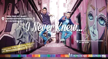 โดยการแชร์หลากหลายเรื่องราวอันน่าทึ่งในฮ่องกง เข้าไปค้นหาเรื่องราวที่ “ไม่เคยรู้มาก่อน” ของพวกเขาเหล่านี้ ทั้งการตามหาสตรีตอาร์ต ศิลปะการปรุงอาหารชั้นเลิศ สถานที่สุดฮิพ และการผจญภัยแบบยกครอบครัวในฮ่องกง ได้ที่ MyStories.DiscoverHongKong.com ลุ้นรางวัลแพ็กเกจท่องเที่ยวระดับวีไอพี และคูปองช็อปปิ้ง ออนไลน์ ตั้งแต่วันนี้ถึง 24 เมษายนนี้ ซึ่งเป็นการนำแนวคิดเรื่อง "Social First" มาใช้เพื่อสร้างแรงบันดาลใจให้กับนักท่องเที่ยวผ่านเรื่องราวและการนำเสนอมุมมองแปลกใหม่ไม่ซ้ำใคร ทำให้สามารถเข้าถึงผู้คนได้อย่างมีประสิทธิภาพมากขึ้นโดยการใช้วิธีการสื่อความหมายและโดนใจกว่าที่เคย