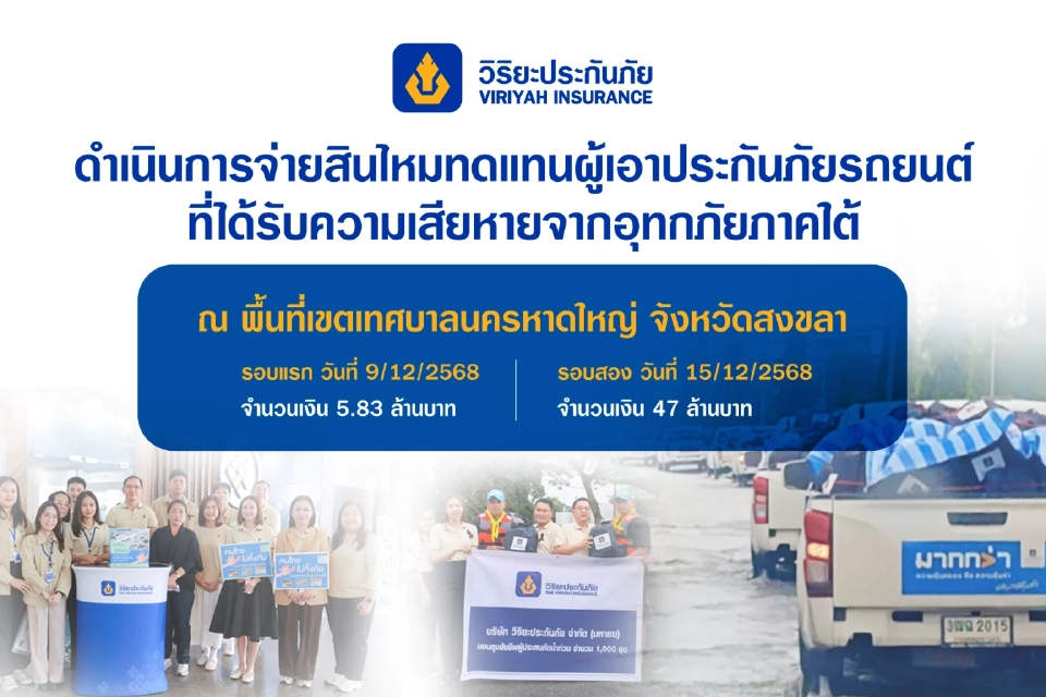 นายณัฐพงศ์ บุญเย็น ผู้ช่วยกรรมการผู้จัดการ บริษัท วิริยะประกันภัย จำกัด (มหาชน) เปิดเผยว่า หลังจากที่สถานการณ์อุทกภัยในพื้นที่เขตเทศบาลนครหาดใหญ่ จังหวัดสงขลา คลี่คลายลงและอยู่ระหว่างการฟื้นฟูเพื่อให้กลับสู่สภาวะปกติ รวมถึงอีกหลายพื้นที่ในจังหวัดทางภาคใต้ตอนล่างที่ระดับน้ำลดลงแล้ว แต่ยังมีบางพื้นที่ที่ยังคงมีน้ำท่วมขัง ซึ่งบริษัทฯ ได้ดำเนินมาตรการให้ความช่วยเหลือแก่ผู้เอาประกันภัยในพื้นที่ประสบภัยอย่างต่อเนื่อง ทั้งการจัดตั้งศูนย์ปฏิบัติการเฉพาะกิจ เพื่อรองรับสถานการณ์ฉุกเฉิน เพิ่มประสิทธิภาพการรับแจ้งเหตุผ่านสายด่วน 1557 ตลอด 24 ชั่วโมง ปฏิบัติการ First Aid ลงพื้นที่สำรวจความเสียหายรถยนต์และบ้านเรือน พร้อมยกรถออกจากพื้นที่น้ำท่วมที่สามารถเข้าถึงได้มายังพื้นที่จัดเก็บที่ปลอดภัย