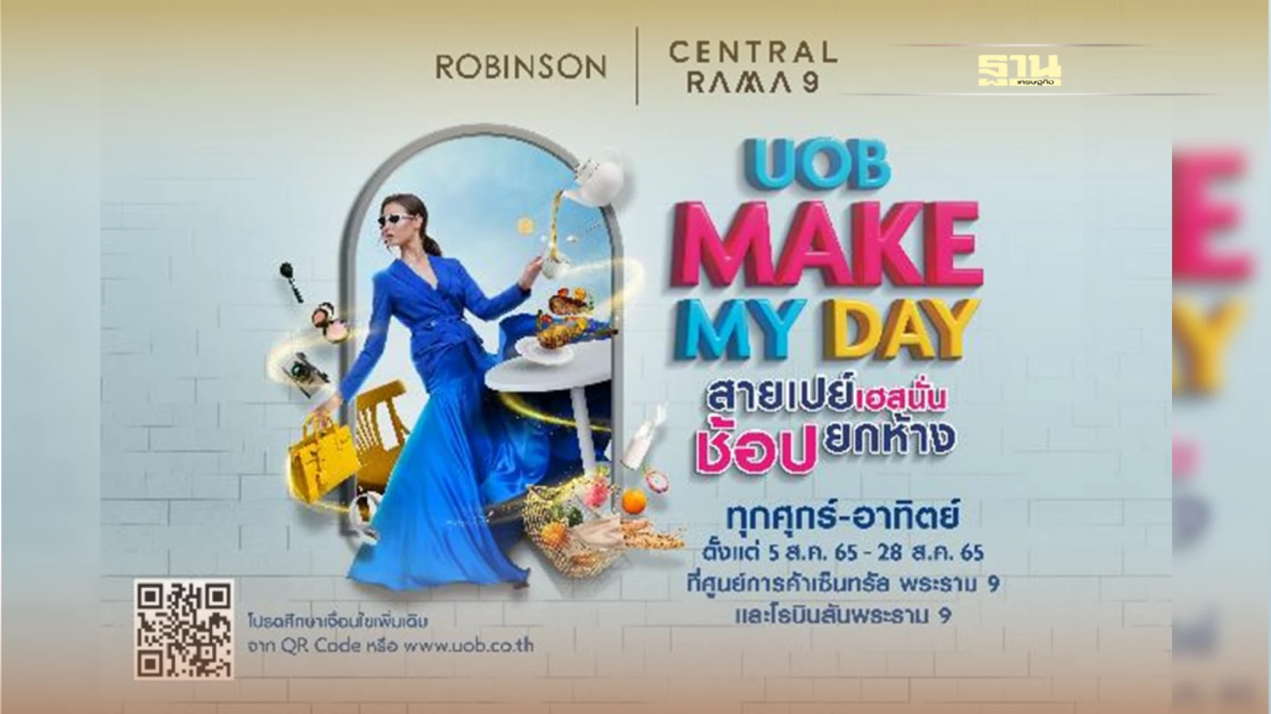 บัตรเครดิต UOB จึงร่วมกับ ศูนย์การค้าเซ็นทรัล พระราม 9 และโรบินสัน พระราม 9 จัดโปรโมชัน “UOB MAKE MY DAY สายเปย์เฮสนั่น ช้อปยกห้าง” เพื่อกระตุ้นการซื้อ พร้อมมอบความคุ้มค่าในทุกการจับจ่ายที่เกิดขึ้นภายในศูนย์การค้าและห้างสรรพสินค้าให้แก่ผู้ถือบัตรเครดิตของยูโอบี ทุกวันศุกร์-เสาร์-อาทิตย์ ตั้งแต่ 5 – 28 สิงหาคม 2565 กับสิทธิประโยชน์ 5 โปรโมชัน เอาใจสายช้อป สายกิน แบบจัดหนัก จัดเต็ม