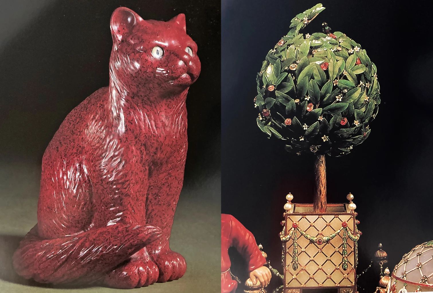 ไข่บางลูกเปิดเข้าไปเปนรถม้า เปนช่อดอกไม้ เปนต้นส้มสวยงามต่างๆ ราคาย่อมจะสูงเพราะใช้หินอัญมณีคัดเกรดมาแกะสลักเอา แล้วประกอบเข้าด้วยทองคำรัด และหนามเตย แถมยังมีจำนวนน้อยเพราะสิ้นวงศ์โรมานอฟเสียก่อน ความมั่นคงในอาชีพซึ่งระบอบการปกครองใหม่ไม่นับถือนำพา ก็พาให้เกิดความสูญสลาย เปนเหตุพาให้ไม่มีใครทำได้อีก จนความมีอยู่จำกัดเปนปัจจัยให้กลายเปนงานศิลป์ชิ้นเอกๆของโลกต่อมาด้วยประการฉะนี้ฯ