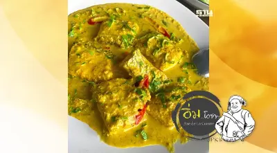ปูดำสดๆเป็นๆจากป่าชายเลนเอามาสับลวกน้ำมันแล้วผัดผงกะหรี่ ใส่วุ้นเส้น ใบขึ้นช่าย กินกับข้าวสวยหุงมาร้อนๆ