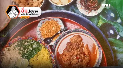 - วิธีทำเน้นเครื่องแน่น – ใช้ซี่โครงหมู หมูบด เลือดหมู มะเขือเทศ และดอกงิ้วแห้ง พร้อมน้ำพริกที่ตำเองจากสมุนไพรและเครื่องเทศหลากชนิด ผัดรวมกันแล้วเคี่ยวให้เข้มข้น กินกับขนมจีน โรยหน้าด้วยกระเทียมเจียว พริกทอด กากหมู ผักสด ผักดอง ครบเครื่องอร่อยเต็มคำ