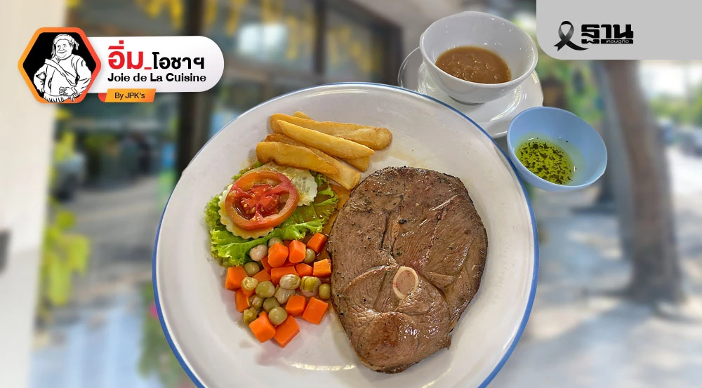 ตำราเป๊ะ แล้วก็สามารถสั่งได้ว่าจะเอาความสุกในระดับไหน ก่อนจะเสิร์ฟเขาก็เอาขนมปังก้อนกับเนยสดมาวางไว้ให้ก่อนตามแบบธรรมเนียม