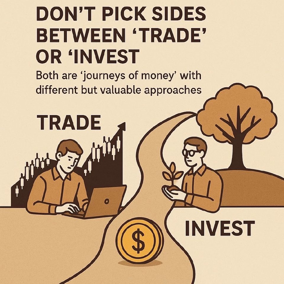 ถ้าคุณเป็นคนใจเย็น มองระยะไกล รักการวางแผน อาจเหมาะกับการลงทุน แต่ถ้าคุณชอบความเร็ว ชอบวิเคราะห์ตลาด ตัดสินใจเร็ว มีวินัย เทรดอาจเป็นทางของคุณ