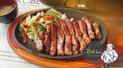 วัวเจ้าเมือง เอ้ย วัวโกเบที่เขาเล่ามานี้ เนื้อจะนุ่มสวยไขมันแทรกดี ยามเอามาจี่ในกระทะร้อนๆผิวนอกกรอบเกรียมอร่อยดีแล้วข้างในฉ่ำชุ่มละลายได้ดีในโพรงปาก หากว่าเคี้ยวหยับๆสักแค่สองที_บร้ะ!