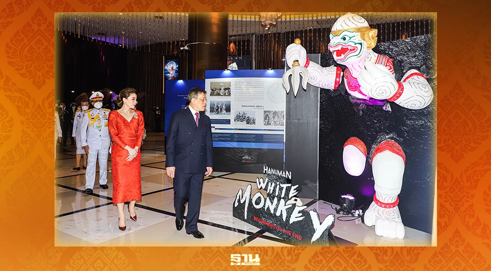 ต่อจากนั้น เสด็จพระราชดำเนินไปยังโรงภาพยนตร์ฯ ทอดพระเนตรนิทรรศการ “โขนภาพยนตร์” เสร็จแล้ว เสด็จเข้าภายในโรงภาพยนตร์ฯ ทรงรับการทูลเกล้าทูลกระหม่อมถวายสูจิบัตรและถวายของที่ระลึก เสร็จแล้ว นางนฤมล ล้อมทอง กรรมการผู้จัดการ บริษัท สหศีนิมา จำกัด กราบบังคมทูลรายงานวัตถุประสงค์ของการจัดงาน และกราบบังคมทูลเชิญทอดพระเนตรโขนภาพยนตร์ หนุมาน ไวท์ มังกี (WHITE MONKEY) จบแล้ว