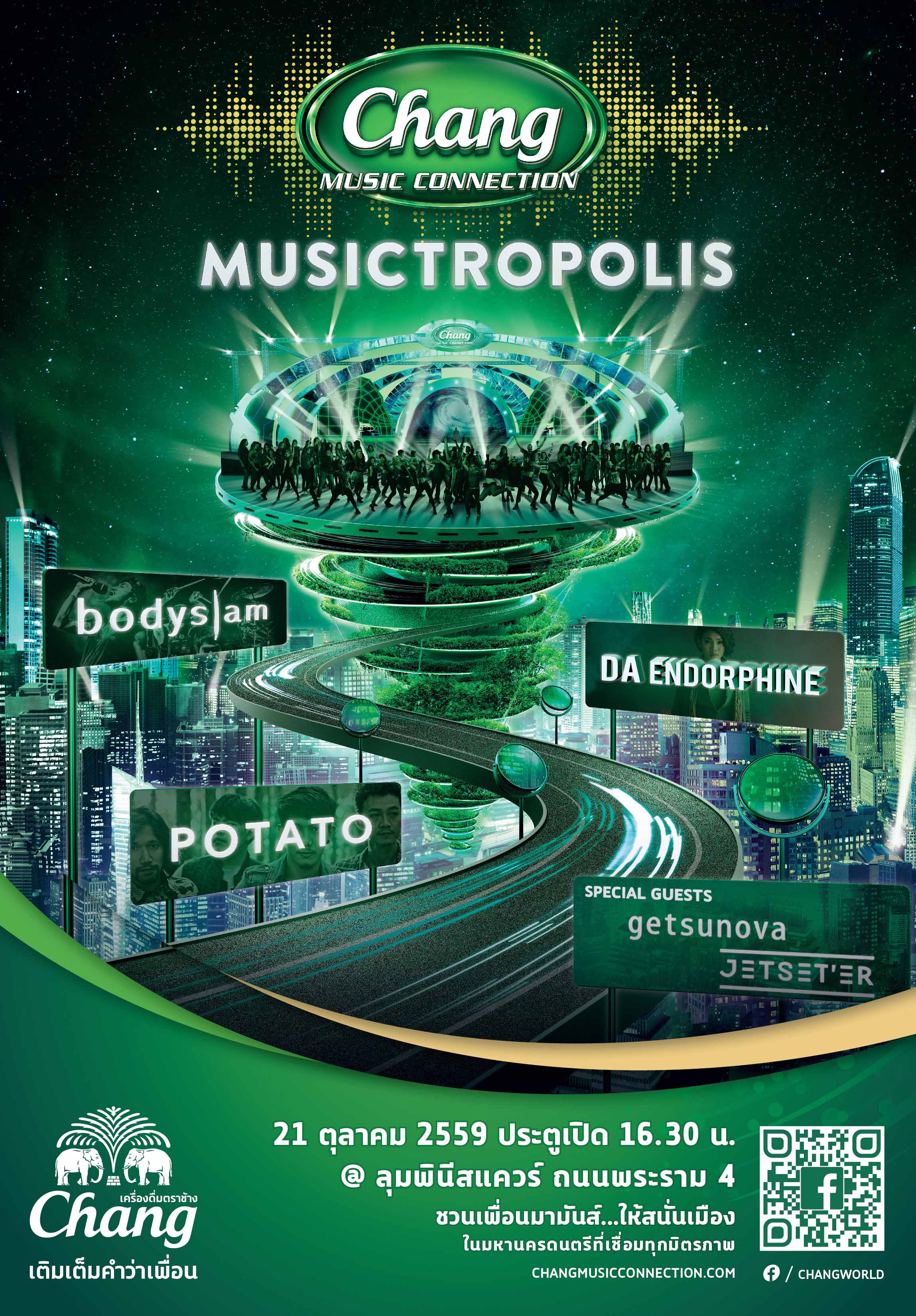 พบกับมหานครดนตรี “Musictropolis” ที่จะคอนเนคความมันส์ทะลุขอบ พร้อมเปิดที่สุดของเมืองแห่งดนตรีที่แรก กับศิลปินระดับแนวหน้าของเมืองไทยอย่าง บอดี้สแลม, โปเตโต้ , ดา เอ็นโดฟิน, เก็ตสึโนวา และ เจ็ตเซ็ตเตอร์ ชวนเพื่อนมามันส์ให้สนั่นเมือง ได้แล้ว