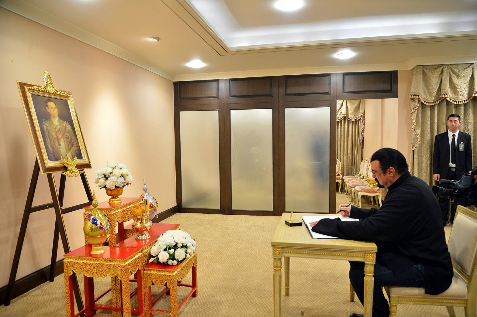 ในโอกาสนี้ นายสตีเวน ซีกัล กล่าวยกย่องพระบาทสมเด็จพระปรมินทรมหาภูมิพลอดุลยเดช ทรงเป็นพระมหากษัตริย์ผู้ยิ่งใหญ่ที่ทั่วโลกต่างชื่นชม และพระปรีชาสามารถเป็นที่ประจักษ์แก่คนไทยและต่างประเทศ จึงขอแสดงความเสียใจต่อประชาชนชาวไทยในความสูญเสียครั้งยิ่งใหญ่ ในการสวรรคตของพระบาทสมเด็จพระปรมินทรมหาภูมิพลอดุลยเดช
