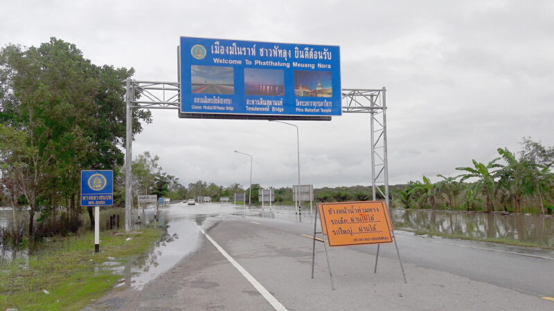 ทั้งนี้ มีสายทางที่ระดับน้ำท่วมสูงยังไม่สามารถสัญจรผ่านได้ 11 สายทาง ได้แก่ สาย ชพ.5015,นศ.3109 ,4019,4057,พท.5050,สข 4022 ,สฎ.3022,2007,ตง.1018,1037,3002 โดยมีระดับน้ำเฉลี่ย 50-90 เซนติเมตร เบื้องต้นกรมได้ติดตั้งป้ายเตือนและป้ายแนะนำเส้นทางเลี่ยงบริเวณต้นทาง ให้ทราบสถานการณ์ ผ่านได้/ผ่านไม่ได้ รวมทั้งติดตั้งหลักนำทาง 2 ข้าง เพื่อเตือนให้ผู้ขับขี่ทราบขอบเขตช่องจราจร นอกจากนี้ กรณีระดับน้ำสูงรถเล็กสัญจร ผ่านไม่ได้ กรมได้จัดรถบรรทุก 6 ล้อ สำหรับบริการประชาชนให้เข้าถึงที่พักอาศัยได้สะดวกยิ่งขึ้น