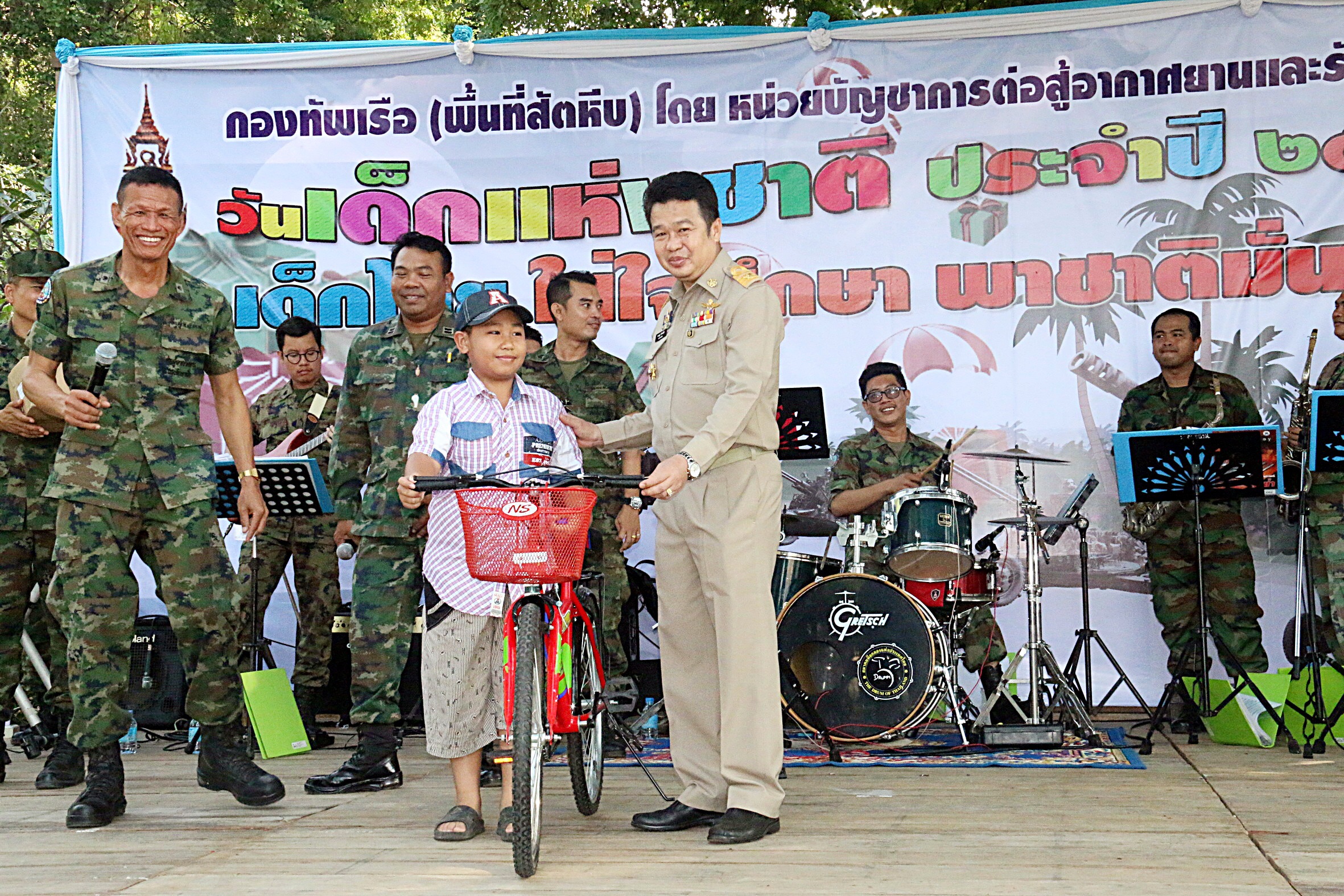 พล.ร.ต. เอกราช พรหมลักภัก ผู้บัญชาการหน่วยบัญชาการต่อสู้อากาศยานและรักษาฝั่ง กล่าวว่าการจัดงานวันเด็กในครั้งนี้ เราทุกคนได้ตระหนักถึงความสำคัญของเด็กและเยาวชนว่าเขาเหล่านั้นจะเติบโตขึ้นเป็นกำลังของสังคม และจะเป็นผู้รับผิดชอบในการพัฒนาชาติบ้านเมืองให้เจริญก้าวหน้า สืบทอดความเป็นชาติต่อไปในอนาคต ซึ่งกิจกรรมในวันนี้จะทำให้เด็กและเยาวชนได้รับความ รัก ความอบอุ่น ความปรารถนาจากผู้ใหญ่ และจะทำให้เด็กรู้สึกตระหนักถึงความสำคัญ ในบทบาทหน้าที่ของตนเองที่มีต่อครอบครัว ชุมชน และสังคมในโอการต่อไป ซึ่งในปีนี้ พลเอกประยุทธ์ จันทร์โอชา นายยกรัฐมนตรีได้ให้คำขวัญวันเด็กไว้ว่า “เด็กไทย ใส่ใจศึกษษ พาชาติมั่นคง “จึงขอให้เด็กๆทุกคนนำคำขวัญไปใช้เป็นแนวทางปฎิบัติในการศึกษาและชีวีตประจำวันต่อไป