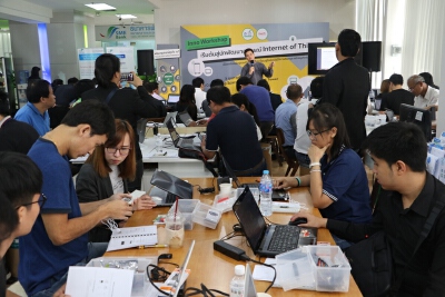 วันที่ 3 ก.พ.2560 -ธนาคารพัฒนาวิสาหกิจขนาดกลางและขนาดย่อมแห่งประเทศไทย (ธพว.หรือ SME Development Bank) จัดกิจกรรมอบรมเชิงปฏิบัติการสร้างธุรกิจด้วยนวัตกรรมเทคโนโลยี (Inno Workshop) “เริ่มต้นสู่นักพัฒนาอุปกรณ์ ให้ทุกสิ่งเชื่อมถึงอินเตอร์เน็ต (Internet of Things)” ณ สำนักงานใหญ่ SME Bank Tower มีกลุ่มสตาร์ทอัพและผู้ประกอบการเอสเอ็มอีตื่นตัวเข้าร่วมงานอย่างคับคั่ง โดย ธพว.จัดเตรียมอุปกรณ์ปฏิบัติการ IoT เพื่อฝึกทักษะการทำงานกับอุปกรณ์โดยตรง จากการร่วมมือกับสถาบันเทคโนโลยีพระจอมเกล้าเจ้าคุณทหารลาดกระบัง