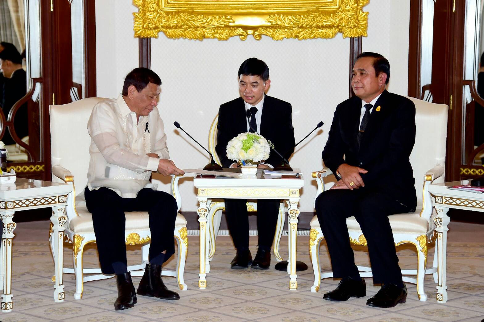 ผู้นำทั้งสองได้ร่วมหารือข้อราชการ พร้อมด้วยคณะรัฐมนตรีของทั้งสองฝ่าย อาทิ พลเอกประวิตร วงษ์สุวรรณ รองนายกรัฐมนตรีและรัฐมนตรีว่าการกระทรวงกลาโหม นายสมคิด จาตุศรีพิทักษ์ รองนายกรัฐมนตรี นายดอน ปรมัตถ์วินัย รัฐมนตรีว่าการกระทรวงการต่างประเทศ นางอภิรดี ตันตราภรณ์ รัฐมนตรีว่าการกระทรวงพาณิชย์ และนางกอบกาญจน์ วัฒนวรางกูร รัฐมนตรีว่าการกระทรวงการท่องเที่ยวและกีฬา ฝ่ายสาธารณรัฐฟิลิปปินส์ อาทิ นายเอนริเก เอ. มานาโล รักษาการรัฐมนตรีว่าการกระทรวงการต่างประเทศ นายคาร์ลอส จี. โดมิงเกส ที่สาม รัฐมนตรีว่าการกระทรวงการคลัง นายเอ็มมานูเอล ปินยอล รัฐมนตรีว่าการกระทรวงเกษตร และนายเดลฟิน เอ็ม. ลอเรนซานา รัฐมนตรีว่าการกระทรวงกลาโหม เป็นต้น