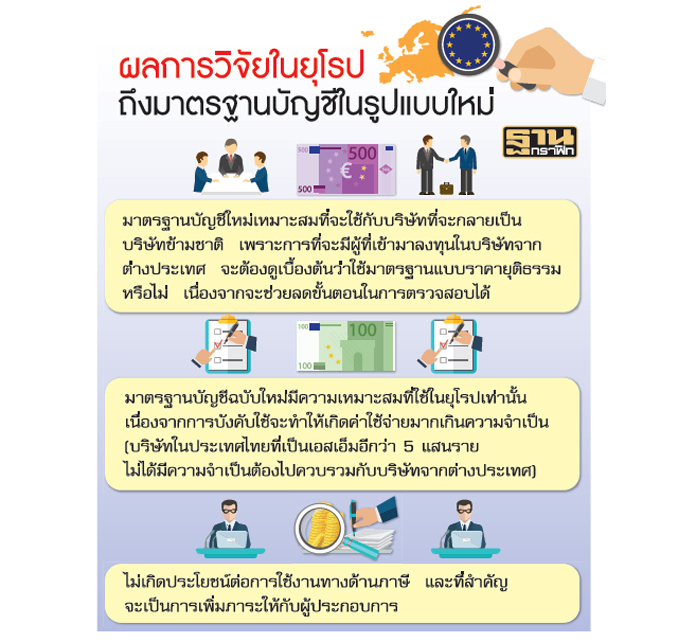 นายชัยยุทธ อังศุวิทยาหุ้นส่วนสำนักงาน เอ.เอ็ม.ที. แอสโซซิเอท ซึ่งเป็นสำนักสอบบัญชีเปิดเผยกับ “ฐานเศรษฐกิจ” ว่าวันที่ 1 มกราคม 2561 สภาวิชาชีพบัญชีจะประกาศให้มีการใช้มาตรฐานบัญชี IFRS for SME ของสากล หรือยกร่างมาตรฐานบัญชีฉบับใหม่ เพื่อบังคับใช้กับนิติบุคคลไทยในกลุ่มของนิติบุคคลที่อยู่นอกตลาดหลักทรัพย์แห่งประเทศไทย (ตลท.) ซึ่งเป็นกิจการที่ไม่มีส่วนได้ส่วนเสียสาธารณะ (NPAE) ต้องจัดทำบัญชีแบบง่ายที่เรียกว่า NPAE Accounting โดยจะยกเลิกมาตรฐานฉบับ NPAE ที่ใช้ในปัจจุบัน