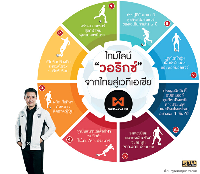 เปิดไทม์ไลน์ “วอริกซ์” แบรนด์น้องใหม่ผู้ล้มยักษ์คว้าลิขสิทธิ์ชุดช้างศึกทีมชาติไทย เตรียมระดมทุน 400ล้านล่าสัญญาทีมชาติและสโมสรดังทั้งใน-ตปท. กับเส้นทางตามฝัน 5 ปีขึ้นไป “คีย์เพลเยอร์สปอร์ตแวร์เอเชีย”