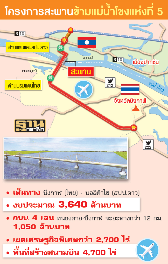 เล็งผุดสะพานข้ามโขง 5 เชื่อมบึงกาฬ-บอลิคำไซ ลาวได้แหล่งทุนแล้ว