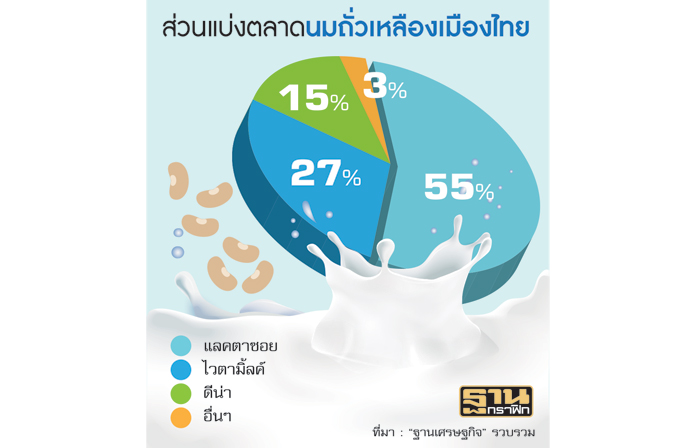 ภาพรวมตลาดนมถั่วเหลืองในเมืองไทยมีอัตราการเติบโตสูงขึ้นต่อเนื่อง อีกทั้งยังสามารถชิงส่วนแบ่งทางการตลาดและกลุ่มผู้บริโภคนมวัวให้หันมาดื่มนมถั่วเหลืองเพิ่มมากขึ้นในช่วง 5 ปีที่ผ่านมา จนตลาดมีมูลค่าเพิ่มสูงขึ้นเป็น 1.8 หมื่นล้านบาทและมีแนวโน้มขยายตัวเพิ่มขึ้นอีก จากกระแสการดูแลสุขภาพที่มาแรง และเป็นอีกทางเลือกสำหรับผู้ที่แพ้นมวัว