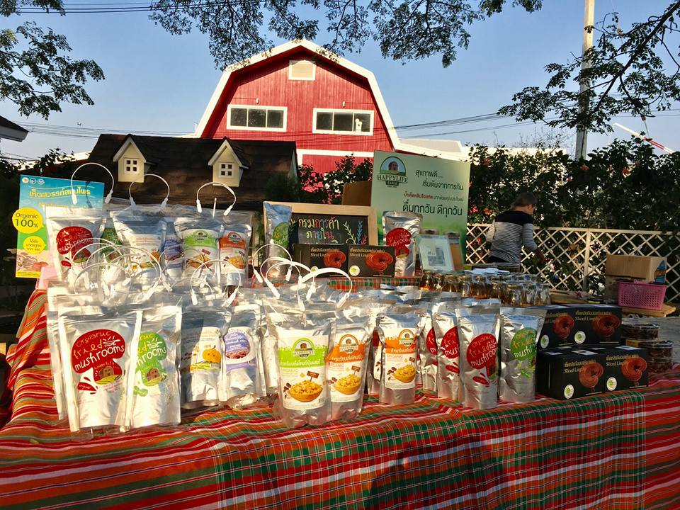อนึ่ง ผลิตภัณฑ์เดิมภายใต้แบรนด์ HAPPYLIFE FARM ประกอบไปด้วย เห็ดทอด 2 รสชาติ ได้แก่ เห็ดสวรรค์ และเห็ดปรุงรสสมุนไพร ,ข้าวเกรียบเห็ดโคนญี่ปุ่น 3 รสชาติ ได้แก่ รสออริจินอล หรือดั้งเดิม ,รสบาร์บีคิว และรสสาหร่ายวาซาบิ โดยมีจุดเด่นอยู่ที่การมีเห็ดเป็นส่วนประกอบประมาณ 70% ของข้าวเกรียบ