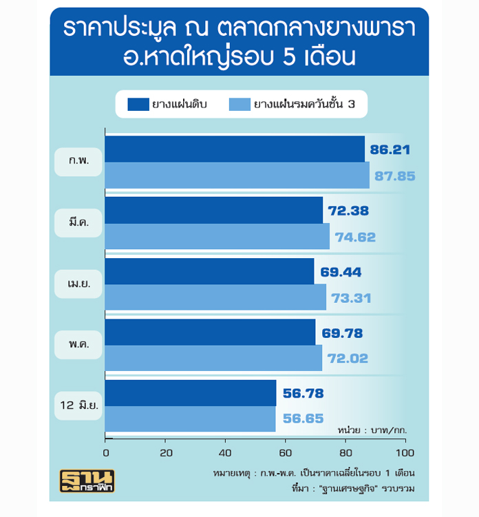 บิ๊กเครือข่ายยางชี้เหตุหลักราคายางรูด จากยางสังเคราะห์ทั่วโลกยังค้างสต๊อก 4 ล้านตันตัวกดราคายางธรรมชาติไม่โงหัว บิ๊กสมาคมยางฯระบุตลาดเซี่ยงไฮ้-ชิงเต่าของจีนตุนสต๊อกใกล้เต็มพิกัดชะลอนำเข้า กยท.ปฏิเสธลั่นบียูบริษัทลูกกดราคาซื้อตํ่ากว่า 5 เสือ