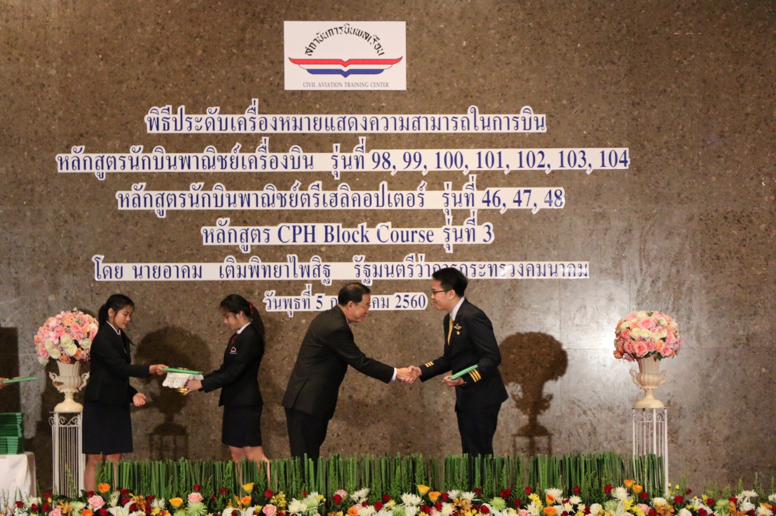 โดย นายอาคม เติมพิทยาไพสิฐ รัฐมนตรีว่าการกระทรวงคมนาคม ได้ประดับเครื่องหมายแสดงความสามารถในการบินให้กับผู้สำเร็จการศึกษาหลักสูตรต่อไปนี้