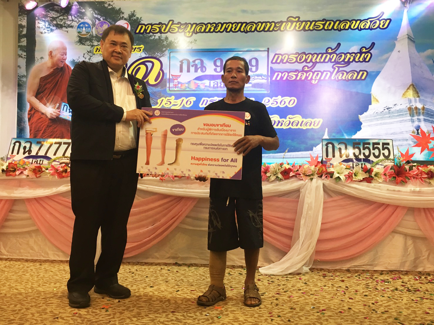 นายเชิดชัย สนั่นศรีสาคร รองอธิบดีกรมการขนส่งทางบก เป็นประธานเปิดประมูลเลขทะเบียนรถสวยของจังหวัดเลย ครั้งที่ 4 หมวด กฉ "การงานก้าวหน้า การค้าถูกโฉลก " เลขที่ราคาสูงสุด กฉ 8888 ประมูล 500,000 บาท เลขที่ราคาต่ำสุด กฉ 2000 ประมูล 13,000 บาท โดยมี นายพรชัย ถมกระจ่าง รองผู้ว่าราชการจังหวัดเลย พร้อมหัวหน้าส่วนราชการร่วมเป็นเกียรติในงานพร้อมมอบอุปกรณ์เพื่อการยังชีพแก่ผู้พิการจากการใช้รถใช้ถนน สำหรับรายได้จากการประมูลทั้งหมดนำเข้ากองทุนเพื่อความปลอดภัยในการใช้รถใช้ถนนเพื่อรณรงค์ลดอุบัติเหตุทางถนน