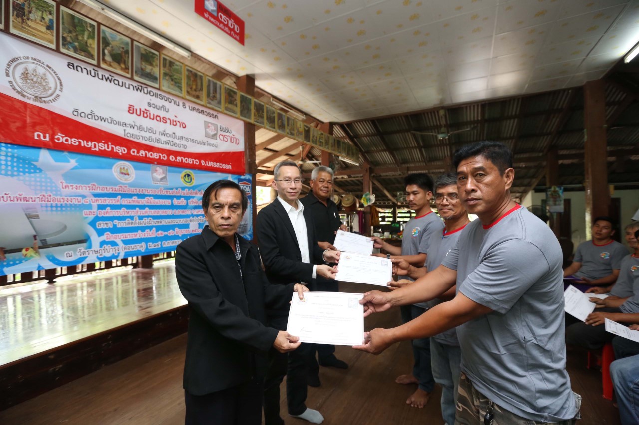 บริษัท สยามอุตสาหกรรมยิปซัม (สระบุรี) จำกัด หรือ “ยิปซัม ตราช้าง”ตระหนักถึงการพัฒนาฝีมือแรงงานให้สังคม เพื่อการพัฒนาเศรษฐกิจและสังคมอย่างยั่งยืน จึงร่วมกับ กรมพัฒนาฝีมือแรงงาน จัดโครงการฝึกอบรม “ช่างยิปซัมฝีมือช้าง...พัฒนาชุมชน” ด้วยการนำคณะวิทยากรผู้เชี่ยวชาญ ลงพื้นที่ในเขตชุมชนต่างๆเพื่อถ่ายทอดความรู้ ด้านการติดตั้งผนังและฝ้าเพดานให้แก่ช่าง พร้อมกับให้ช่างได้ฝึกปฏิบัติงานจริง ล่าสุด มอบความรู้ให้แก่ช่างฝีมือ ณ วัดราษฎร์บำรุง อำเภอลาดยาว จังหวัดนครสวรรค์