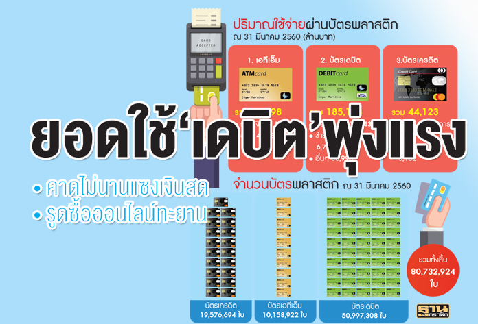 ยอดใช้‘เดบิต’พุ่งแรงคาดไม่นานแซงเงินสดรูดซื้อออนไลน์ทะยาน[/caption]