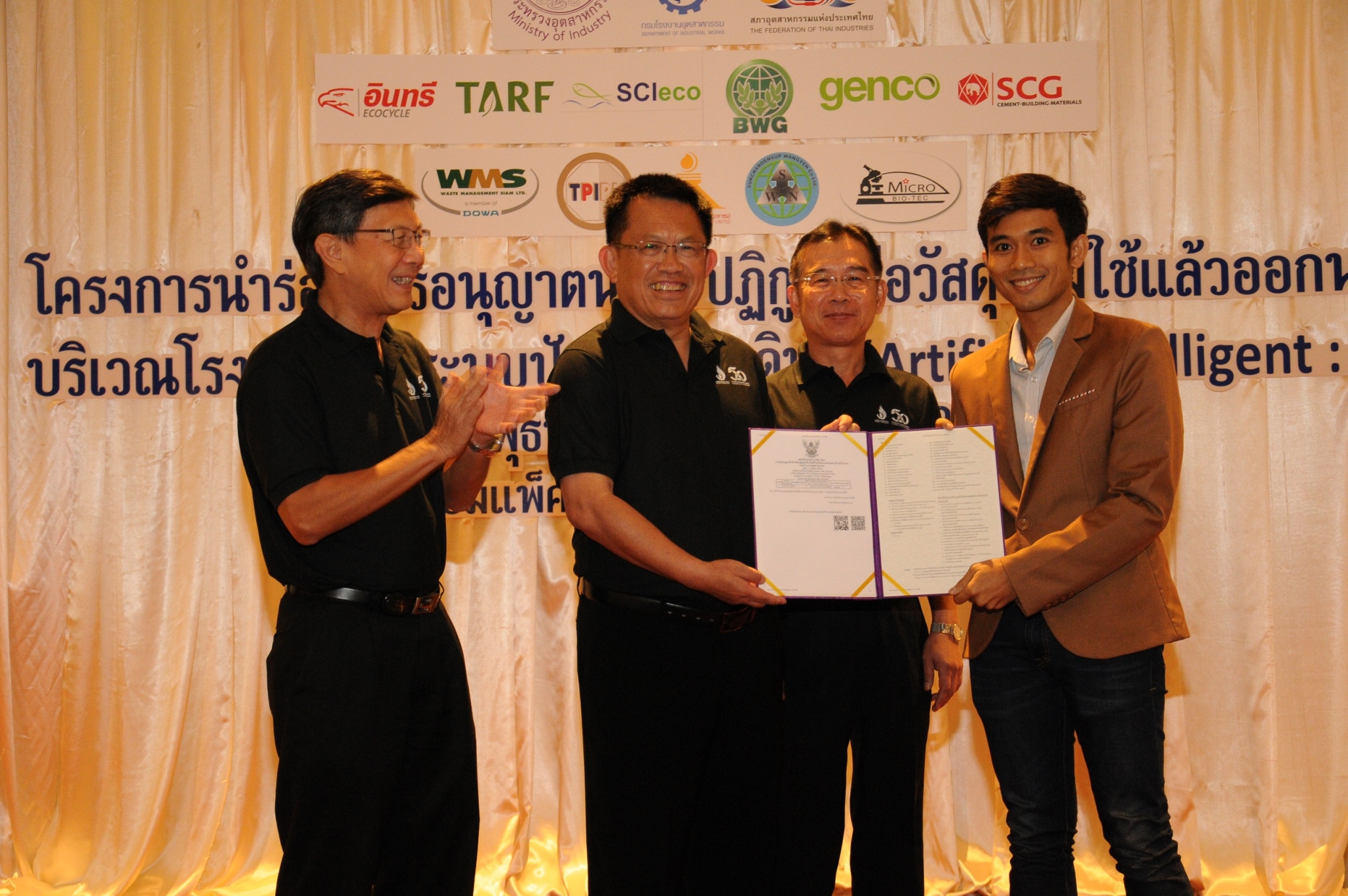 ด้าน นายเจน นำชัยศิริ ประธานสภาอุตสาหกรรมแห่งประเทศไทย กล่าวว่า โครงการดังกล่าวถือเป็นการก้าวสู่การยกระดับอุตสาหกรรมไปสู่ยุคไทยแลนด์ 4.0 หรืออุตสาหกรรมที่ใช้เครื่องจักรอัตโนมัติอย่างแท้จริง ซึ่งถือเป็นเรื่องที่ดีและสอดคล้องกับเป้าหมายของสภาอุตสาหกรรมที่ต้องการให้การยกระดับอุตสาหกรรมไปสู่ยุคไทยแลนด์ 4.0 เกิดขึ้นอย่างเป็นรูปธรรมรวดเร็ว ประกอบกับในสภาอุตสาหกรรมแห่งประเทศไทยมีกลุ่มอุตสาหกรรมการจัดการเพื่อสิ่งแวดล้อมที่ดูแลผู้ประกอบการในเรื่องดังกล่าวอยู่แล้ว ความร่วมมือที่เกิดขึ้นจึงทำได้อย่างรวดเร็ว รวมถึงจะช่วยให้ภาครัฐสามารถจัดการกากอุตสาหกรรมได้อย่างมีประสิทธิผลอันจะนำมาซึ่งผลลัพธ์ในการพัฒนาอุตสาหกรรมได้อย่างยั่งยืนในอนาคต