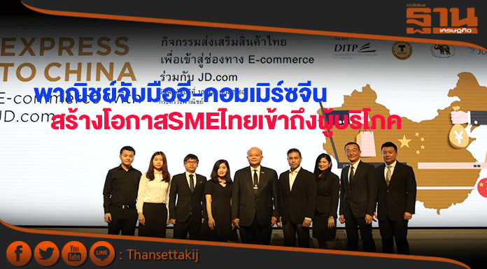 กระทรวงพาณิชย์จับมือเว็บไซต์อี-คอมเมิร์ซรายใหญ่และเป็นที่นิยมของผู้บริโภคชาวจีน ต่อยอดการเข้าถึงกลุ่มลูกค้าจากโครงการศูนย์สร้างโอกาสธุรกิจไทยสู่จีน เปิดหน้าร้านไทยแลนด์ พาวิลเลียน นำร่องสินค้าที่ได้รับตรา T Mark จากเอสเอ็มอีไทยที่ได้มาตรฐานระดับสากล กว่า 80 ราย พร้อมกระตุ้นผู้ประกอบการรายใหม่ขอตราสัญลักษณ์ T Markสร้างความน่าเชื่อถือจากตลาดจีนมากขึ้น