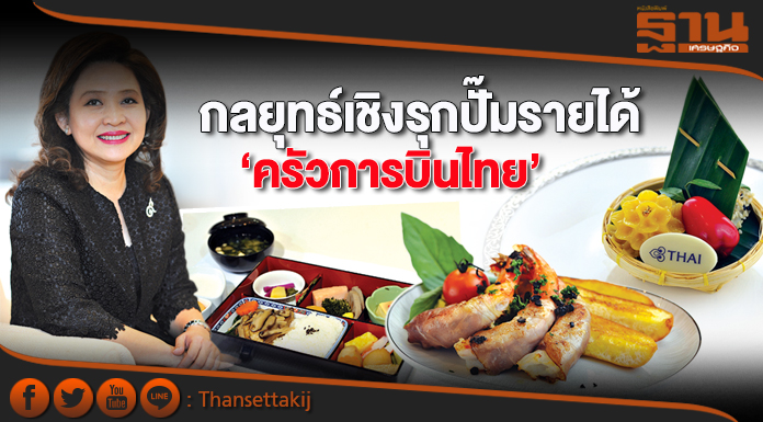 ขณะเดียวกันเรายังได้รีแบรนด์ภัตตาคารการบินไทยภายในสนามบิน เป็นภัตตาคารเยลโล ออร์คิด ปรับปรุงที่นั่งใหม่ และเรายังมองหาพันธมิตร ที่จะร่วมกันขยายธุรกิจครัวการบินไปต่างประเทศ ในช่วง 2 ปีข้างหน้านี้ เพราะเรามีเมืองไปบินลงในต่างประเทศหลายแห่ง มีจุดแข็งโลจิสติกส์ที่จะต่อยอดธุรกิจใหม่ให้เราได้ อีกทั้งเรายังมีการทำซักรีด ซักแห้ง ชุดพนักงาน ลูกเรือด้วย เราก็มองว่าต่อไปก็จะขยายไปบริการข้างนอกได้