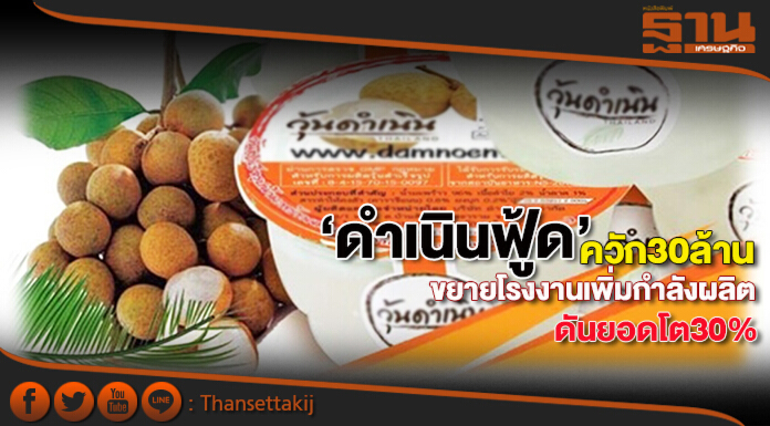 บ.ดำเนินฟู้ดฯอัดงบ 30 ล้านบาทขยายโรงงาน เพิ่มกำลังการผลิต ใส่นวัตกรรม ยืดอายุผลิตภัณฑ์หวังส่งออกยุโรปและสหรัฐฯ พร้อมเพิ่มช่องทางการขายในประเทศสู่โมเดิร์นเทรด ซูเปอร์สโตร์ และแฟมิลี่มาร์ท เชื่อรายได้โต 30% จากปีที่ผ่านมา