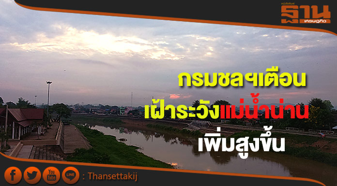 เกิดฝนตกหนักในพื้นที่ภาคเหนือตอนบนบริเวณจ.เชียงรายและจ.น่าน ส่งผลให้ระดับน้ำในแม่น้ำสายหลักเพิ่มสูงขึ้น กรมชลประทาน ประเมินสภาพน้ำท่าในแม่น่านเพิ่มสูงขึ้น แจ้งจังหวัดให้เฝ้าระวังแล้ว