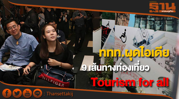 -14 ก.ย.60-นางสมรัก คำพุทธ รองผู้ว่าการด้านบริหาร การท่องเที่ยวแห่งประเทศไทย (ททท.) เป็นประธานเปิดตัวโครงการ "9 เส้นทางท่องเที่ยวเพื่อคนทั้งมวล Tourism for All" นำเสนอ 9 เส้นทางต้นแบบ เพื่อกระตุ้นการจัดหาสิ่งอำนวยความสะดวกให้แก่บุคคลพิเศษในแหล่งท่องเที่ยว ส่งเสริมความเท่าเทียมในการเดินทางท่องเที่ยวทั่วประเทศไทย