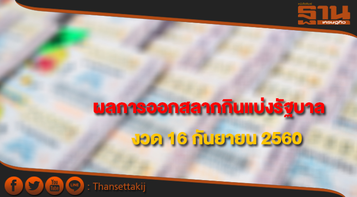 ผลการออกสลากกินแบ่งรัฐบาล งวดประจำวันที่ 16 กันยายน 2560