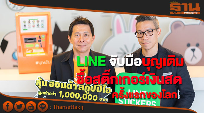 ล่าสุด LINE จับมือร่วมกับ “บุญเติม” ตู้เติมเงินที่ได้รับความนิยมอันดับ 1 ของประเทศ เพื่อให้ผู้ใช้งานสามารถเลือกซื้อสติกเกอร์จากตู้โดยตรงและชำระเงินได้ด้วยเงินสดเป็นครั้งแรกของโลก