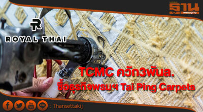 อุตสาหกรรมพรมไทย (TCMC) ควัก 3 พันล้านบาท เข้าซื้อธุรกิจผลิตและจำหน่ายพรมเพื่อการพาณิชย์จาก Tai Ping Carpets International Limited ซึ่งจดทะเบียนในตลาดหลักทรัพย์ฮ่องกง ก้าวขึ้นเป็นหนึ่งในผู้ผลิตและจำหน่ายพรมรายใหญ่อันดับต้น ๆ ของโลก ชูแบรนด์ รอยัลไทย (Royal Thai) สู่การเป็นแบรนด์สินค้าพรมระดับโลก