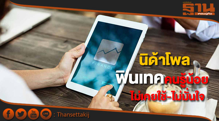 ศูนย์สำรวจความคิดเห็น “นิด้าโพล” สถาบันบัณฑิตพัฒนบริหารศาสตร์ (นิด้า) เปิดเผยผลสำรวจความคิดเห็นของประชาชน เรื่อง “การสำรวจการรับรู้ของประชาชนเกี่ยวกับเทคโนโลยีทางการเงิน (Financial Technology: Fintech)” ทำการสำรวจระหว่างวันที่ 18 – 21 กันยายน 2560 โดยสอบถามความคิดเห็นจากประชาชนทั่วประเทศ กระจายทุกภูมิภาค ระดับการศึกษา และอาชีพ รวมทั้งสิ้น จำนวน 2,000 หน่วยตัวอย่าง เกี่ยวกับการสำรวจการรับรู้ของประชาชนเกี่ยวกับเทคโนโลยีทางการเงิน (Financial Technology: Fintech)