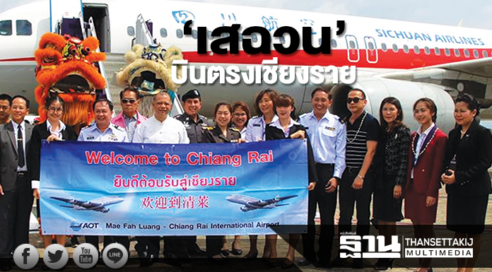 เชียงรายเนื้อหอม “เสฉวน แอร์ไลน์” ขนคนจีนเที่ยวไทย เปิดบินตรง เฉินตู-เชียงราย สัปดาห์ละ 3 วัน เผยปี 2560 รับนักท่องเที่ยว 2.7 ล้านคน เงินสะพัด 3 หมื่นล้าน