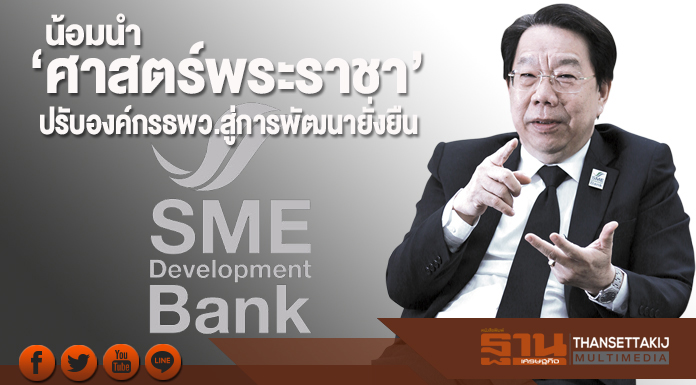 ธนาคารพัฒนาวิสาหกิจขนาดกลางและขนาดย่อมแห่งประเทศไทย (ธพว.) หรือ เอสเอ็มอีเดเวลลอปเม้นท์แบงก์ (SME Development Bank) ภายใต้การนำของ มงคล ลีลาธรรม กรรมการผู้จัดการ คือ ตัวอย่างขององค์กรที่น้อมนำศาสตร์พระราชามาปรับใช้ จนสามารถปรับเปลี่ยนองค์กรไปสู่ทิศทางที่ดีขึ้น จนถึงขนาดที่ พล.อ.ประยุทธ์ จันทร์โอชา นายกรัฐมนตรี ต้องหยิบยกมาพูดถึงในรายการ ‘ศาสตร์พระราชา สู่การพัฒนาอย่างยั่งยืน’ เมื่อวันศุกร์ที่ 20 ต.ค. 2560 ว่า เป็นรัฐวิสาหกิจที่มีผลการดำเนินงานที่ดีขึ้นอย่างชัดเจน และเป็นไปตามแผน