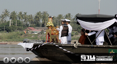 ผู้ว่าราชการจังหวัดหนองคาย อัญเชิญพระโกศและถุงบรรจุเถ้าดอกไม้จันทน์ ทำพิธีลอยเถ้าดอกไม้จันทน์กลางแม่น้ำโขง
