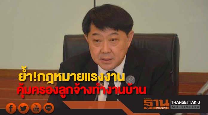 นายอนันต์ชัย อุทัยพัฒนาชีพ ผู้ตรวจราชการกระทรวงแรงงาน รักษาราชการแทนอธิบดีกรมสวัสดิการและคุ้มครองแรงงาน (กสร.) เปิดเผยถึงการคุ้มครองลูกจ้างทำงานบ้านว่า กระทรวงแรงงานได้ออกกฎกระทรวงแรงงานฉบับที่ 14 (พ.ศ.2555) ซึ่งออกตามพระราชบัญัติคุ้มครองแรงงาน พ.ศ. 2541 กำหนดให้ความคุ้มครองลูกจ้างที่ทำงานเกี่ยวกับงานบ้านอันมิได้มีการประกอบธุรกิจรวมอยู่ด้วย โดยมีสาระสำคัญ เช่น ห้ามนายจ้างจ้างเด็กอายุต่ำกว่า 15 ปี เป็นลูกจ้าง กำหนดสิทธิหยุดประจำสัปดาห์ไม่น้อยกว่าสัปดาห์ละครั้ง สิทธิลาป่วยตามที่ป่วยจริงโดยได้รับค่าจ้างไม่เกิน 30 วันทำงาน สิทธิหยุดตามประเพณีปีละไม่น้อยกว่า 13 วัน โดยรวมวันแรงงานแห่งชาติ เป็นต้น หากนายจ้างไม่ปฏิบัติตามจะมีโทษตามกฎหมาย เช่น กรณีจ้างเด็กอายุต่ำกว่า 15 ปี เป็นลูกจ้าง จะมีโทษปรับตั้งแต่ 4 แสนบาท ถึง 8 แสนบาท ต่อลูกจ้างหนึ่งคน หรือจำคุกไม่เกิน 2 ปี หรือทั้งปรับทั้งจำ กรณีไม่กำหนดให้มีวันหยุดประจำสัปดาห์ หรือไม่ให้ค่าจ้างในวันที่ลาป่วย จะมีโทษปรับไม่เกิน 20,000 บาท