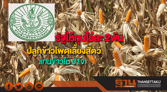 กรมส่งเสริมการเกษตรเชิญชวนชาวนาเข้าร่วม โครงการส่งเสริมการปลูกข้าวโพดเลี้ยงสัตว์ฤดูแล้งหลังนา ปี 2560/61 รัฐสนับสนุนเงินเป็นค่าใช้จ่ายในการปลูกข้าวโพดเลี้ยงสัตว์แก่เกษตรกรไร่ละ 2,000 บาท แต่ไม่เกิน 15 ไร่