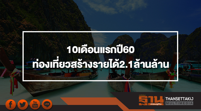 - 20 พ.ย. 60 - นายพงษ์ภาณุ เศวตรุนทร์ ปลัดกระทรวงการท่องเที่ยวและกีฬา แถลงสถานการณ์ท่องเที่ยวไทย 10 เดือนแรกของปี 2560 ว่า สร้างรายได้แก่ประเทศและกระจายรายได้สู่ภูมิภาคต่างๆ รวม 2.1 ล้านล้านบาท หรือขยายตัว 8.67% จากช่วงเวลาเดียวกันของปีที่ผ่านมา