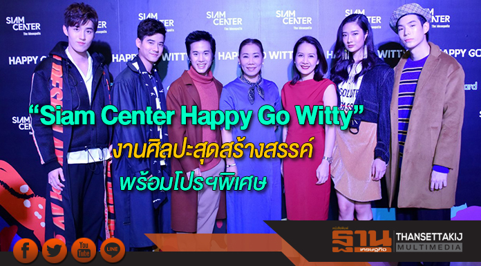 ต้อนรับปีใหม่ที่กำลังจะมาเยือน ร่วมกับ บริษัท โทเทิ่ล แอ็คเซ็ส คอมมูนิเคชั่น จำกัด (มหาชน) จัดงาน “Siam Center Happy Go Witty” (สยามเซ็นเตอร์ แฮปปี้ โก วิตตี้) ชวนหนุ่มสาวคนรุ่นใหม่มาร่วมอัพเดทเทรนด์แห่งอนาคตของปีหน้า ไปกับความสนุกสนาน (Amazed) แรงบันดาลใจใหม่ๆ (Inspired) และ การปฏิวัติตัวเองอย่างไม่หยุดนิ่ง (Revolution) จากการตกแต่งบรรยากาศรับเทศกาลแห่งความสุขด้วยผลงานอินสตอลเลชั่นอาร์ทจากศิลปินชื่อดัง พร้อมด้วยสินค้าในแบบ Absolute Siam ที่มีจำหน่ายที่นี่ที่เดียว ตบท้ายด้วยโปรโมชั่นพิเศษจากแบรนด์ไทยดีไซเนอร์ และร้านค้าภายในศูนย์การค้าตั้งแต่วันนี้-15 มกราคม 2561 ณ ชั้น G สยามเซ็นเตอร์ เมืองแห่งไอเดียที่ล้ำเทรนด์