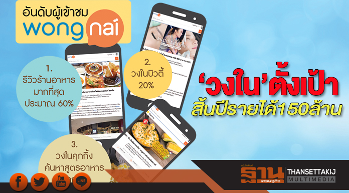 นายยอด ชินสุภัคกุล ประธานเจ้าหน้าที่บริหารและผู้ก่อตั้ง บริษัท วงใน มีเดีย จำกัด เจ้าของไลฟ์สไตล์แพลตฟอร์ม รีวิวร้านอาหารและความงาม wongnai.com กล่าวว่า สำหรับปีนี้รายได้ของวงในโตกว่า 70% เมื่อเทียบกับปีที่ผ่านมา ซึ่งในปี 2561 ตั้งเป้ายอดเติบโตไว้ที่ 60% ด้วยจำนวนยอดผู้เข้าชมกว่า 8 ล้านคนต่อเดือน และผู้ใช้งานที่ล็อกอินเข้าระบบกว่า 7 แสนยูสเซอร์ต่อเดือน ซึ่งผู้ใช้บริการของวงในนั้นส่วนใหญ่เป็นเพศหญิงสัดส่วน 65% โดยมีช่วงอายุอยู่ที่ 24-35 ปี นอกจากนี้ยังพบว่ามีการค้นหาร้านอาหารไทยมากที่สุด และพื้นที่ที่มีคนใช้บริการมากที่สุด คือ กรุงเทพฯ เชียงใหม่ และชลบุรี