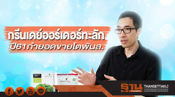 นายชัยรัตน์ คงศุภมานนท์ ประธานเจ้าหน้าที่บริหาร บริษัท กรีนเดย์ โกลบอล จำกัด เจ้าของแบรนด์ “กรีนเดย์” ผู้ดำเนินธุรกิจผักผลไม้อบกรอบ เปิดเผย “ฐานเศรษฐกิจ” ถึงเป้าหมายและแผนทางธุรกิจปี 2561 ว่ารายได้ปี 2561 จะเพิ่มเป็น 1,000 ล้านบาทนั้น มีความเป็นไปได้สูงมากในขณะนี้ เนื่องจาก บริษัทมียอดออร์เดอร์จากลูกค้าทั้งในประเทศและต่างประเทศเข้ามาข้ามปีโดยเฉพาะลูกค้าจากอเมริกาที่สั่งซื้อสินค้าเข้ามาทั้งในรูปของการรับจ้างผลิตหรือโออีเอ็ม และนำเข้าผักผลไม้อบกรอบแบรนด์ “กรีนเดย์”