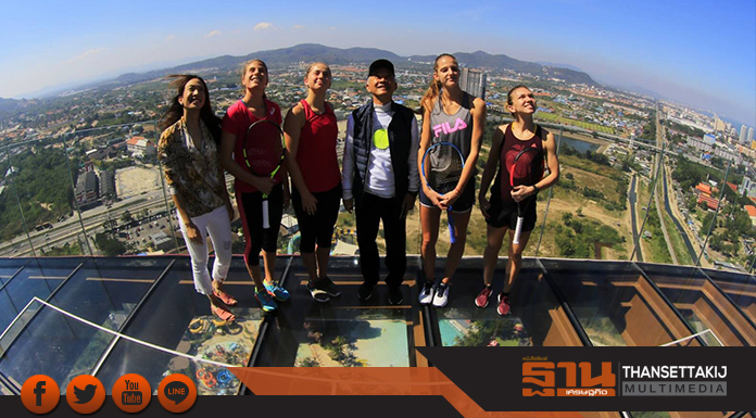 4 สาวนักเทนนิสมือระดับโลก หวดโชว์รับลม บนจุดชมวิวลอยฟ้าพื้นกระจกใส 'สกาย เด็ค' @โรงแรมฮอลิเดย์ อินน์ วานา นาวา หัวหิน ชั้น 27