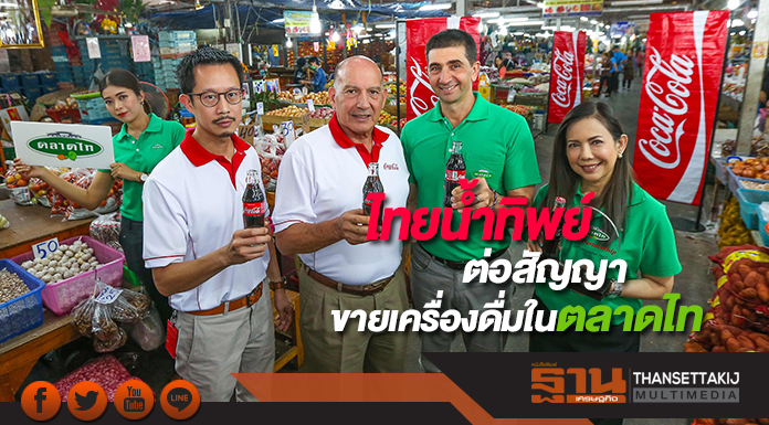 นายฮอร์เฮ่ ชาซาร์เร็ตต้า กรรมการผู้จัดการ บริษัท ไทยน้ำทิพย์ จำกัด ผู้ผลิตและจำหน่ายผลิตภัณฑ์โคคา-โคลา ภายใต้กลุ่มธุรกิจโคคา-โคลา ในประเทศไทย เผยว่า ไทยน้ำทิพย์ ประกาศเป็นพันธมิตรทางธุรกิจกับ บริษัท ไทย แอ็กโกร เอ็กซเชนจ์ จำกัด ผู้ดำเนินกิจการ “ตลาดไท” ตลาดกลางค้าส่งสินค้าเกษตรครบวงจรที่ใหญ่สุดในอาเซียนต่อเนื่องอีก 5 ปี ระหว่างปี 2561 ถึง 2565 หลังสัญญาแรกที่มีระยะเวลา 3 ปีสิ้นสุดลง