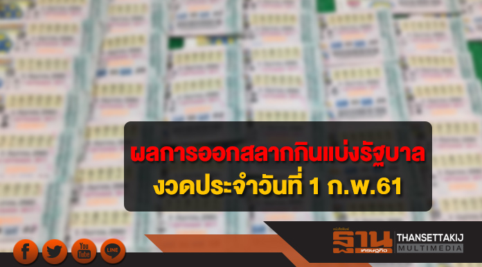 -1 ก.พ. 61-ผลการออกรางวัลสลากกินแบ่งรัฐบาล งวดประจำวันที่ 1 กุมภาพันธ์ 2561