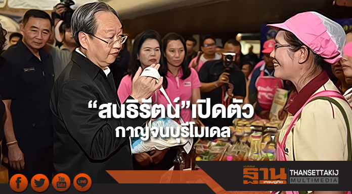 “สนธิรัตน์”เปิดตัว “กาญจนบุรีโมเดล” ประกาศเดินหน้าสร้างงานสร้างอาชีพผู้มีรายได้น้อย ลดค่าครองชีพ และสร้างโอกาสค้าขายให้กับฐานรากอย่างเต็มที่ เล็งลุยต่ออีก 10 จังหวัดที่มีรายได้น้อย เผยการจัดงานครั้งแรก ได้รับการตอบรับดีเกินคาด คนแห่รวมงานคึกคัก พร้อมเปิดงานธงฟ้า จัดหนัก ขายสินค้าราคาถูก และเยี่ยมชมตลาดต้องชม “ถนนคนเดินปากแพรก”
